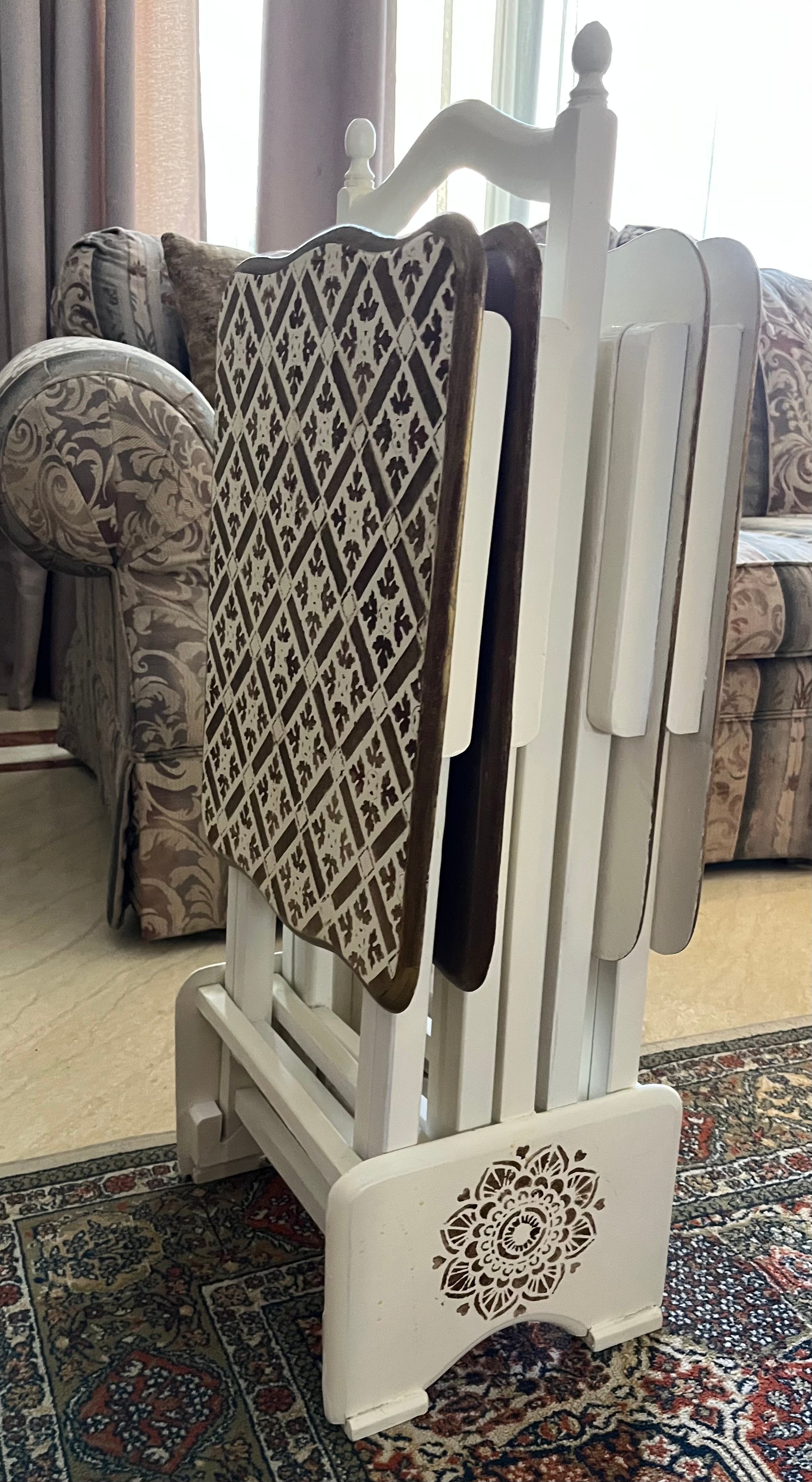 طقم اربع ترابيزات خشب في استاند دهان يدوي
